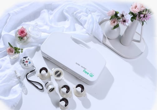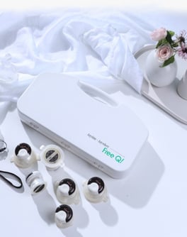 Eletroestimulador sem fio Free-Q pode ser aplicado em diversas pessoas simultaneamente. Apresenta facilidade para fixar em qualquer parte do corpo. Por dispensar uso de cremes para aplicação, evita reações alérgicas nas pessoas com pele sensível. Sua higienização é prática. O copo de vácuo do aparelho tem vida útil longo e seu material é composto por nano prata que garantem ação antimicrobiana eficiente.